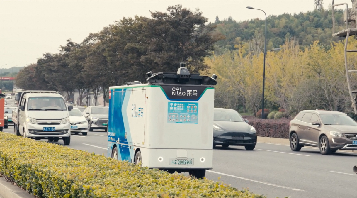 浙江余杭区的闲林、瓶窑等地已经成为名副其实的“无人车社区”,不少居民日常都能看到无人车穿梭在车流中。这里既有车流密集的城市主干道,也有拥挤的工业园区、山路和坡道,路况复杂,但无人车也如同一个老司机,灵活地转弯、超车和会车。以菜鸟为例,在以上片区每天运营的快递无人车超过200车次。