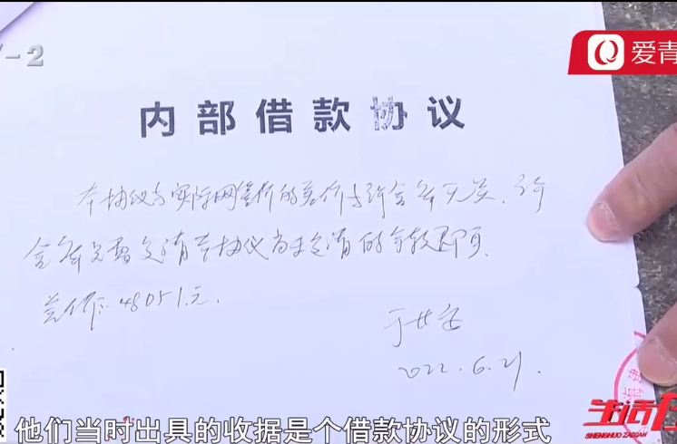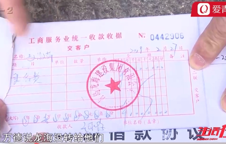 购房者:“这个抵账房他们当时出具了一个借款协议的收据。但这个借款协议当时我们也不懂,当时龙海声称他们全部已这个形式卖的房子,所以这把钱交给了龙海”。