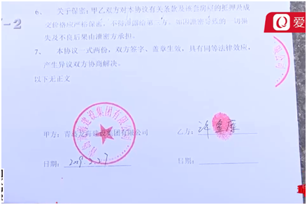 购房者:“龙海就是在万德的售楼处给我们签的这个合同。而且是和我们保证这个是龙海授权他们去卖的”。