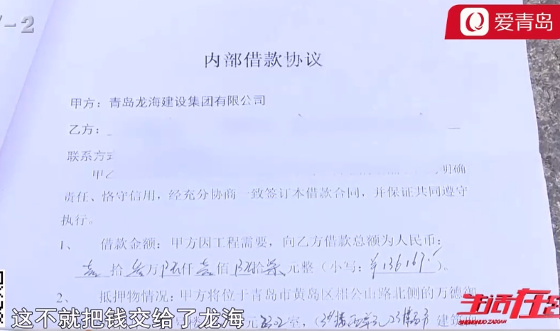青岛龙海建设集团有限公司于经理:“这些都是历史遗留问题”记者:“现在问题卡在哪了?”于经理:“现在政府都已经出面。”记者:“购房者现在不是把钱都给你们龙海了吗?”于经理:“有很多原因,详细情况政府了解”。 记者:“这个钱是你们龙海收了,你把这事推给政府没有用” 于经理:“现在我们董事长在处理,具体什么情况我不知道”。