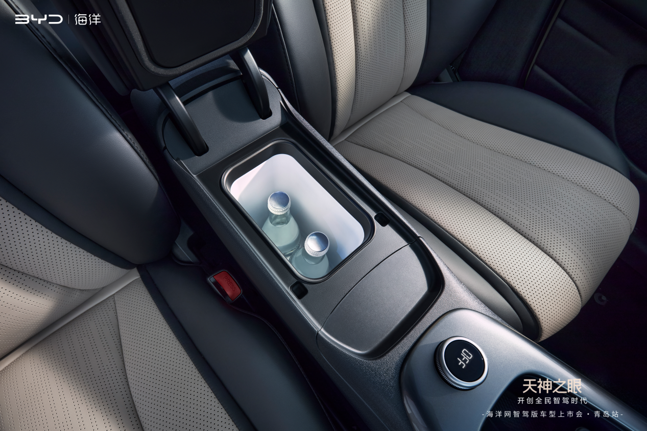 海豚智驾版还是海洋网首批采用怀挡设计的车型,基于比亚迪全新一代热泵技术搭载了冷暖两用车载冰箱,让冰箱彩电大沙发,真正飞入寻常百姓家。