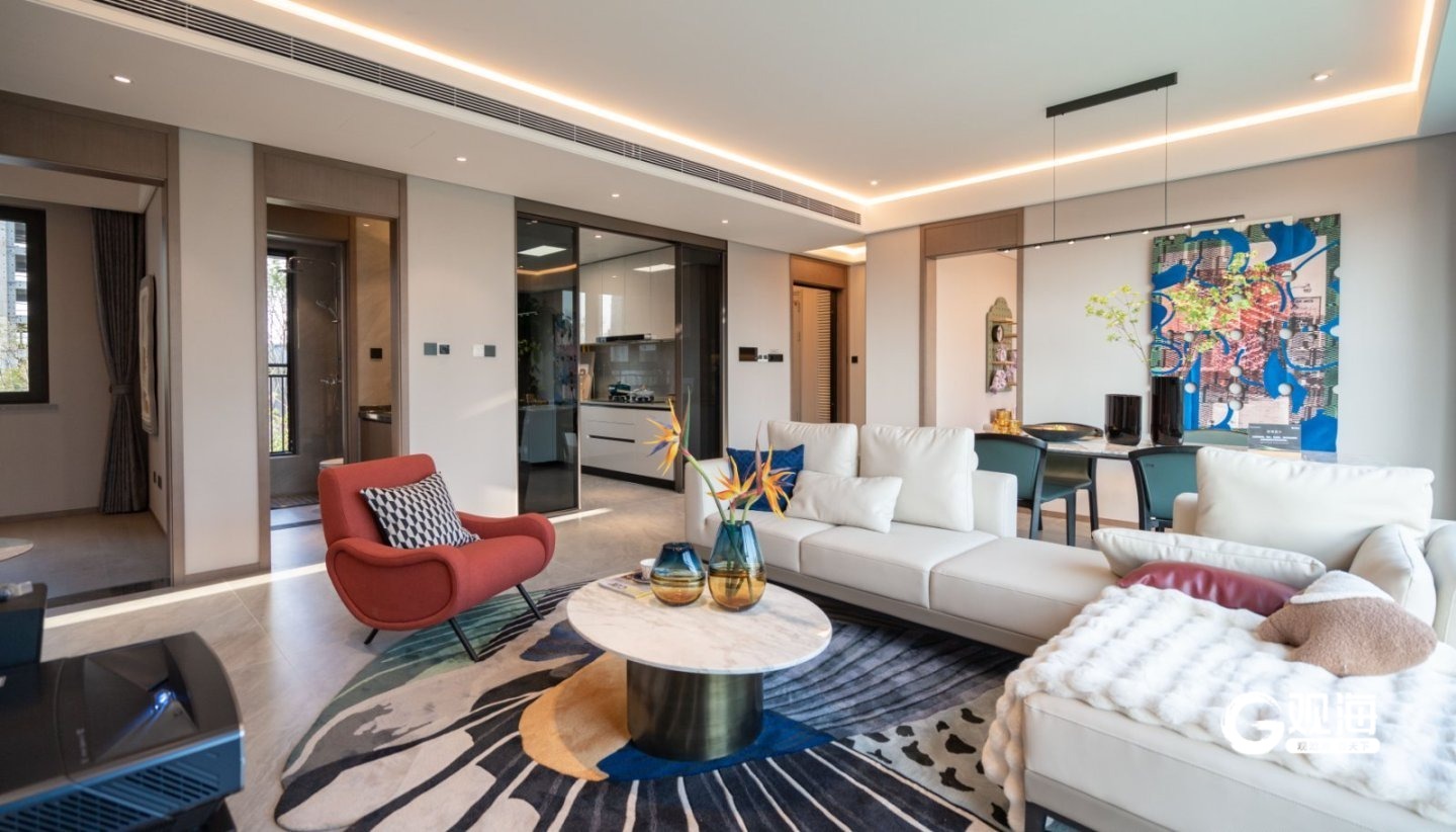 位于崂山区张村河片区的越秀青铁·和樾府项目是高品质住宅省级试点项目,如今11栋住宅已经拔地而起,工人们正在紧张有序地进行装饰装修作业。当记者步入项目实体样板间,“通透明亮”是第一感觉——3.15米的挑高、全景落地窗让客厅空间变得十分开阔,充足的垂直空间也让房间内有充足的采光,居住在此,让人心情愉悦。