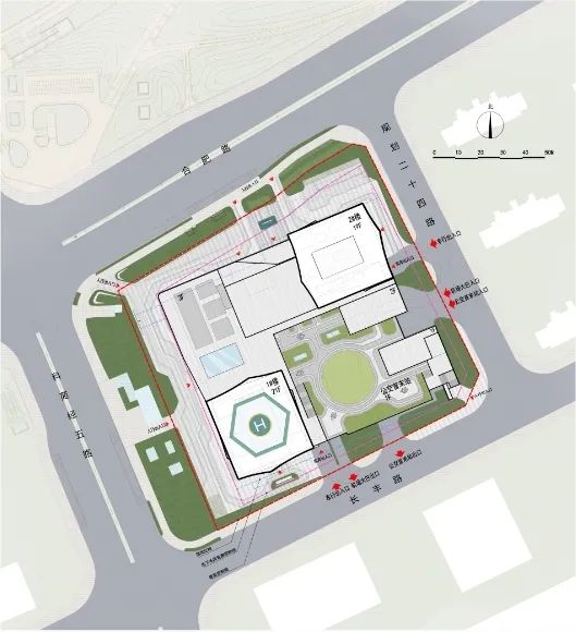 项目紧靠张村河,南侧为东部新天地和孙家下庄安置区,西侧为地铁4号线董家下庄站点,1号楼楼顶设有直升机停机位。