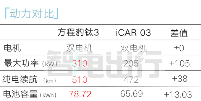 钛3基于DMO平台打造,采用前麦弗逊后五连杆悬架,配备云辇-C主动悬架。新车双电机车型最大功率110/200kW,匹配78.72kWh电池,动力比iCAR 03更强。