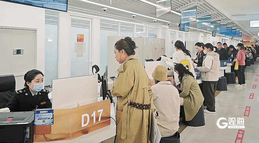 在青岛市民中心2层大厅,许多市民前来办理不动产交易相关手续。王冰洁摄
