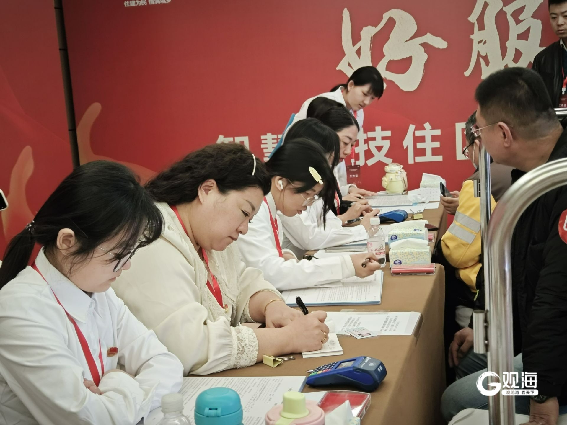 选房现场场面格外火爆,人头攒动。前来选房的市民在工作人员的指引下,进行签到、审核、取号、进入等待区等待选房,整个过程井然有序。在选房区内,配备专人提供“一对一”精准服务,现场电子屏实时同步公示房源选定信息,并由工作人员在展板上动态标注已选房源,申请人选定心仪房源后当场签订《房屋认购书》并缴纳定金,各环节衔接顺畅、高效便民。选房全程由青岛市市中公证处公证监督,确保公开透明。