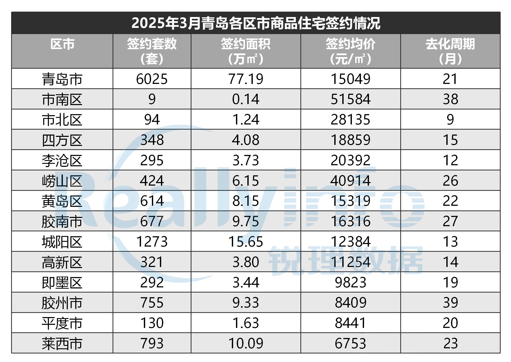 其中商品住宅新增3365套,约42.6万㎡,签约6025套、约77.19万㎡、销售总金额116.16亿元,签约套数、签约面积、签约金额较上个月均大幅上涨,幅度维持在140%左右。签约均价为15049元/㎡。一季度青岛市共计签约商品房16015套,约207.22万㎡,销售总金额292.27亿元,同比分别上涨8.0%、5.0%、6.8%。签约均价14104元/㎡,同比上涨1.7%。