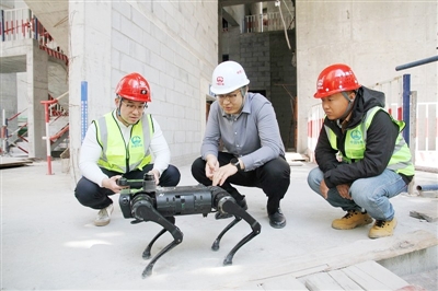 该项目设置工人服务站,连接起科技与一线工人。项目团队依托服务站定期开展培训与实践活动,提升一线工人对智能科技的认知与应用能力,让先进技术真正落地。目前AI技术已经开始应用在安全施工、质量管控等各个场景,比如利用智能巡检机器狗代替人工到施工现场危险区域进行巡检,通过AI分析危险源,识别火焰、烟雾、人员未佩戴安全帽、未穿反光背心等情况,极大提高危险作业区域巡视管理效率及安全性。