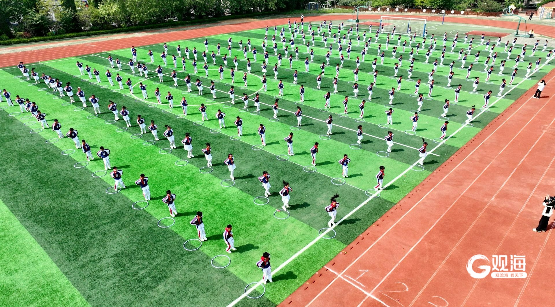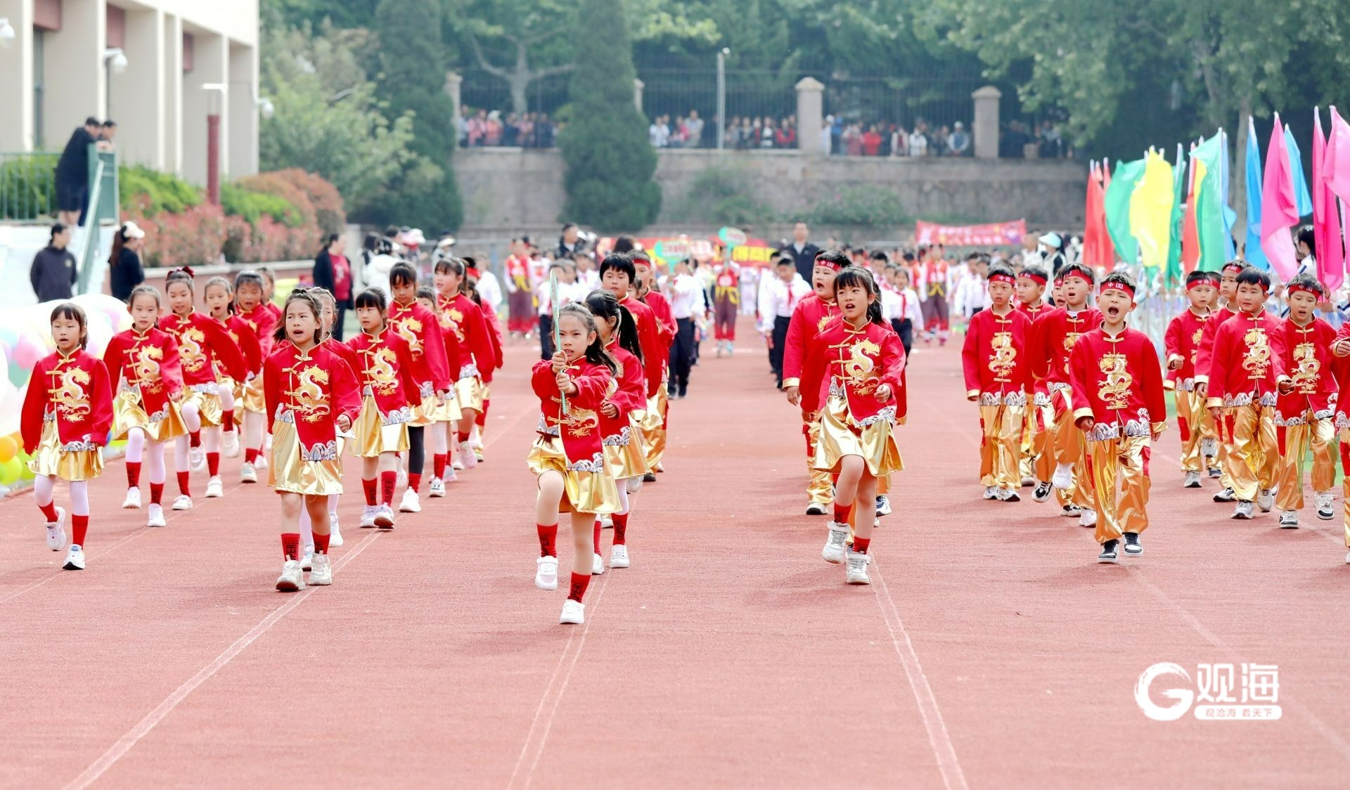 近年来,结合青岛市“十个一”发展规划,学校大力发展体育运动,注重特色体育项目的发展,帆船、轮滑等项目捷报频传。运动会团体项目展示中,四年级的大课间活动集锦展示、三年级呼啦圈舞等团体表演惊艳亮相:翻飞的彩绳编织团结乐章,旋转的呼啦圈似跃动星河,力与美的交融将开幕式推向高潮。