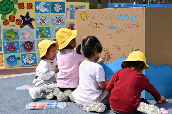 “迷宫涂鸦”:孩子们以《快乐的六一》《神奇的动物王国》《海底神秘世界》等为主题,发挥想象,置身于艺术的创作中,画出了孩子们五彩缤纷的童年,也画出了充满童趣的世界。