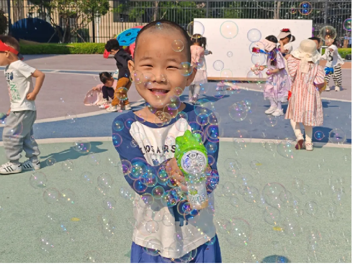 “泡泡嗨翻会”:无拘无束玩水玩泡泡的童年,是孩子们最幸福的时刻。衣服湿了有什么关系,玩水玩泡泡的快乐可是暖呼呼、滚烫着的呢