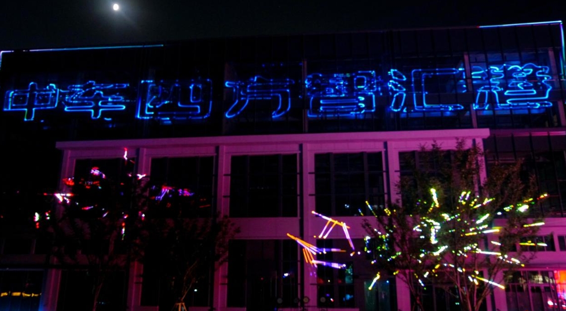 “潮立方”楼体的点亮则将整晚气氛推向高潮——寓意当工业血脉正注入崭新生命力,百年四方将如同“潮立方”建筑群霎时流光溢彩。