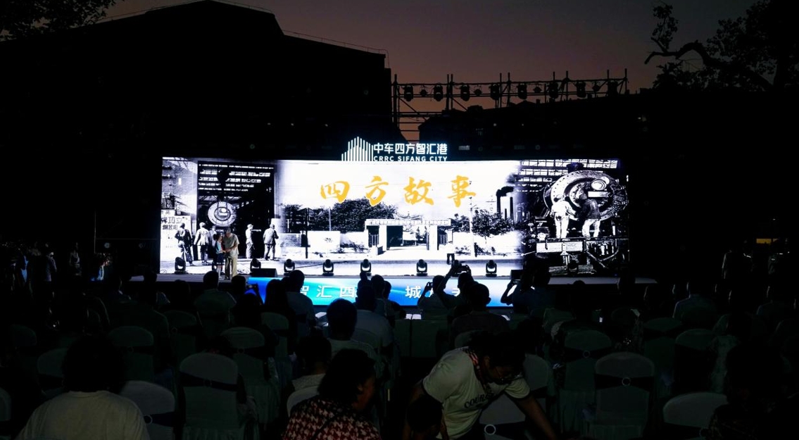 傍晚时分,来宾们漫步于机车公园斑驳的铁轨旁,穿梭于绿荫夹道的余姚路,三三两两汇聚到“潮立方”。活动现场,荷塘古韵、非遗漆扇、乐队演唱……文化符号时代错落,却又相得益彰。孩子们在公园老树下的蹦床上雀跃,大人们惬意闲谈,老人们在老旧厂房前驻足凝望……不同年龄,悠然自乐——正是中车四方智汇港所打造的“全龄友好”具体而微的生活写照。