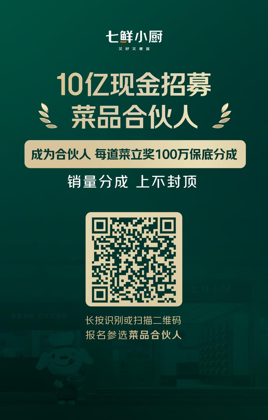 传统餐饮行业长期存在着经营困局——品质餐厅因房租与人力成本高企、传统外卖平台收取高额佣金及供应链限制难以实现规模化发展,特色菜品囿于单店运营无法触达全国市场。7月22日,京东正式启动“菜品合伙人”招募计划,投入10亿现金,面向全国餐饮品牌与个体厨师为1000道招牌菜招募合伙人。在全新的供应链模式下,合伙人仅需提供菜品配方并参与研发,由合营品质餐饮制作平台“七鲜小厨”承担现炒制作及严格品控,以外卖、自提两种形式销售。竞选胜出成为每道菜品的合伙人后,可直接获得100万元现金保底分成,后续该菜品的销售分成上不封顶。