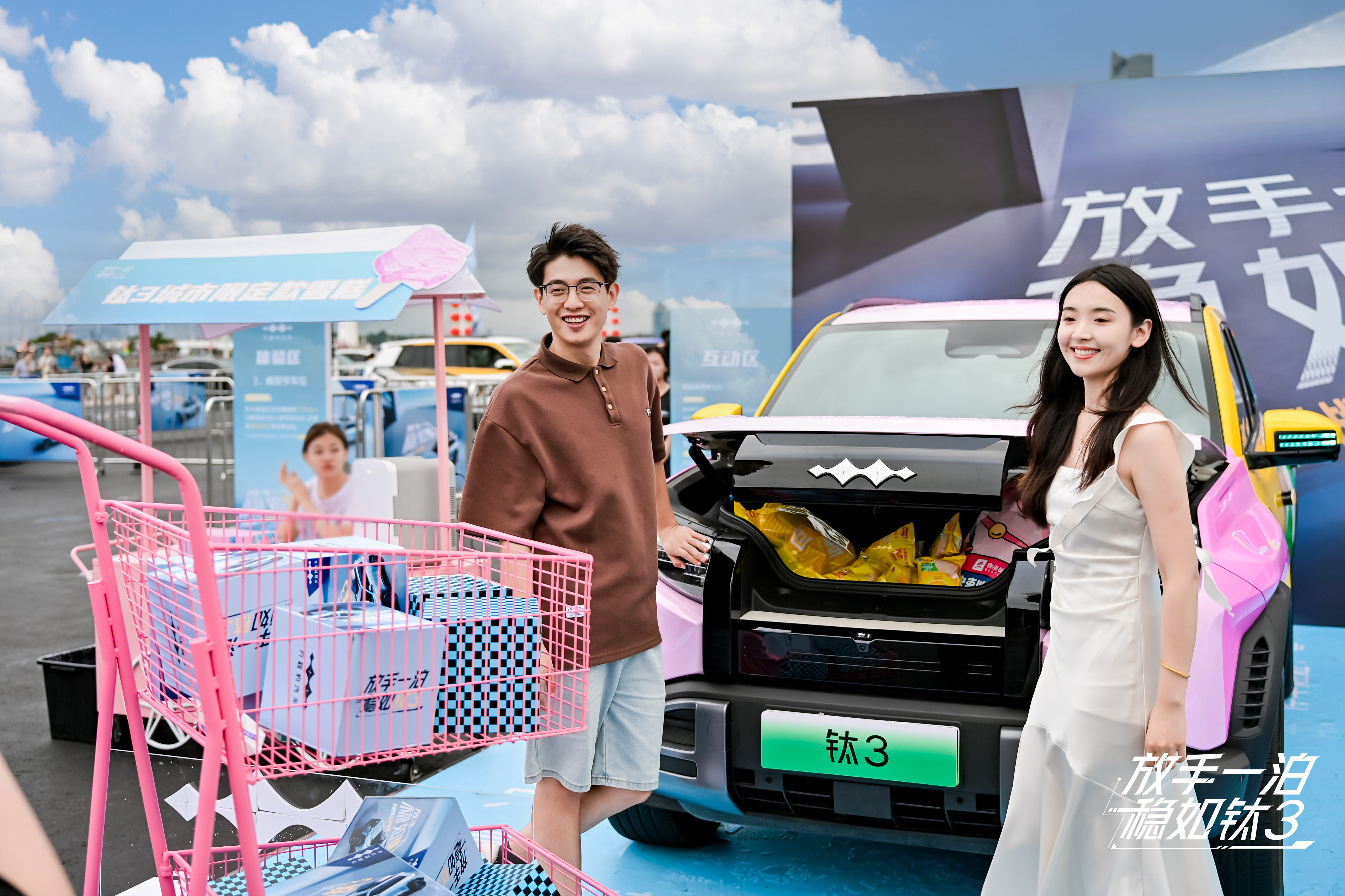 活动的玩法设计兼顾互动性与福利性,参与者既能通过完成挑战、互动任务抽取盲盒,在前备箱装载挑战中感受超大空间的实用性;也能在颜值打卡区定格潮品钛3的时尚瞬间,领取青岛城市限定款雪糕。多样的玩法不仅让泊车辅助科技体验更接地气,还以盲盒、限定礼品等福利调动起现场用户的热情,让每位参与者在挑战的欢乐中,深度感受钛3的科技魅力。