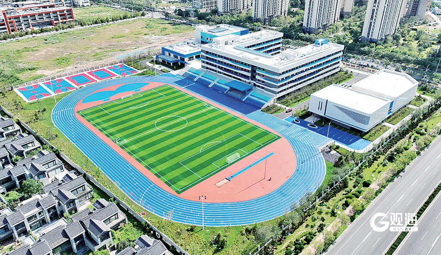 航拍青岛高新区第二实验初级中学。该校作为青岛三十九中教育集团成员校,于今年正式启用。韩星 摄