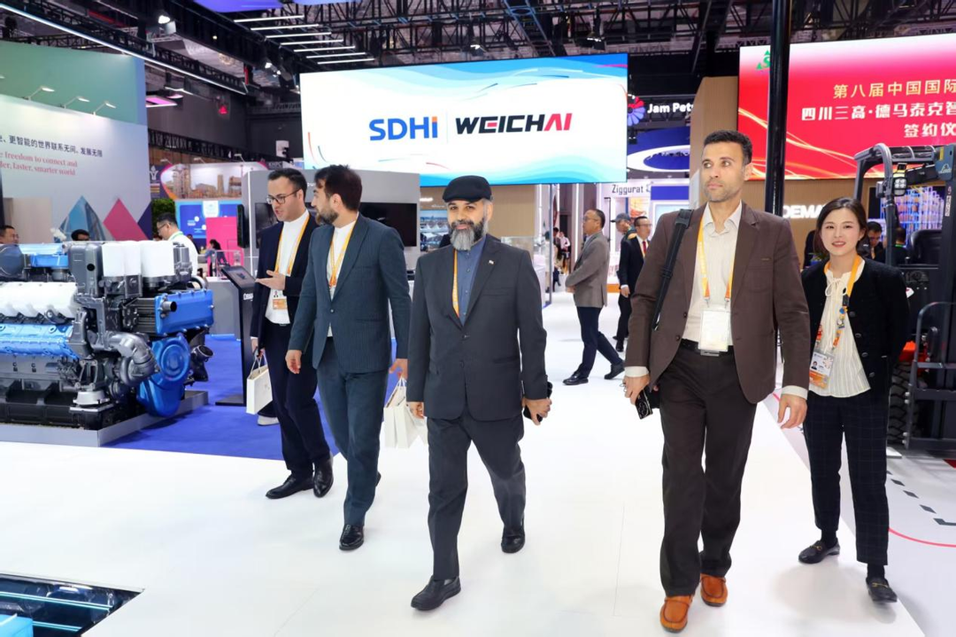 装备制造展区的山东重工展位挺热闹,旗下潍柴八赴进博之约,今年更是带着意大利法拉帝、法国博杜安、德国林德物料搬运、美国德马泰克、德国LHY、加拿大巴拉德、德国欧德思等一众海外控股“好友”集体亮相,共同展示高端装备、智能系统等硬核产品和技术。