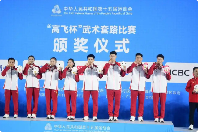 另一边,巴赫的手与山东武术队队员的手掌交握时,颁奖台的聚光灯恰好打在运动员绣着云纹的队服上。这枚十五运武术套路团体金牌,是山东在该项目的历史性突破,更像是一个隐喻——竞技图景中,山东体育正以刚柔并济的姿态,重新定义“山东范儿”。