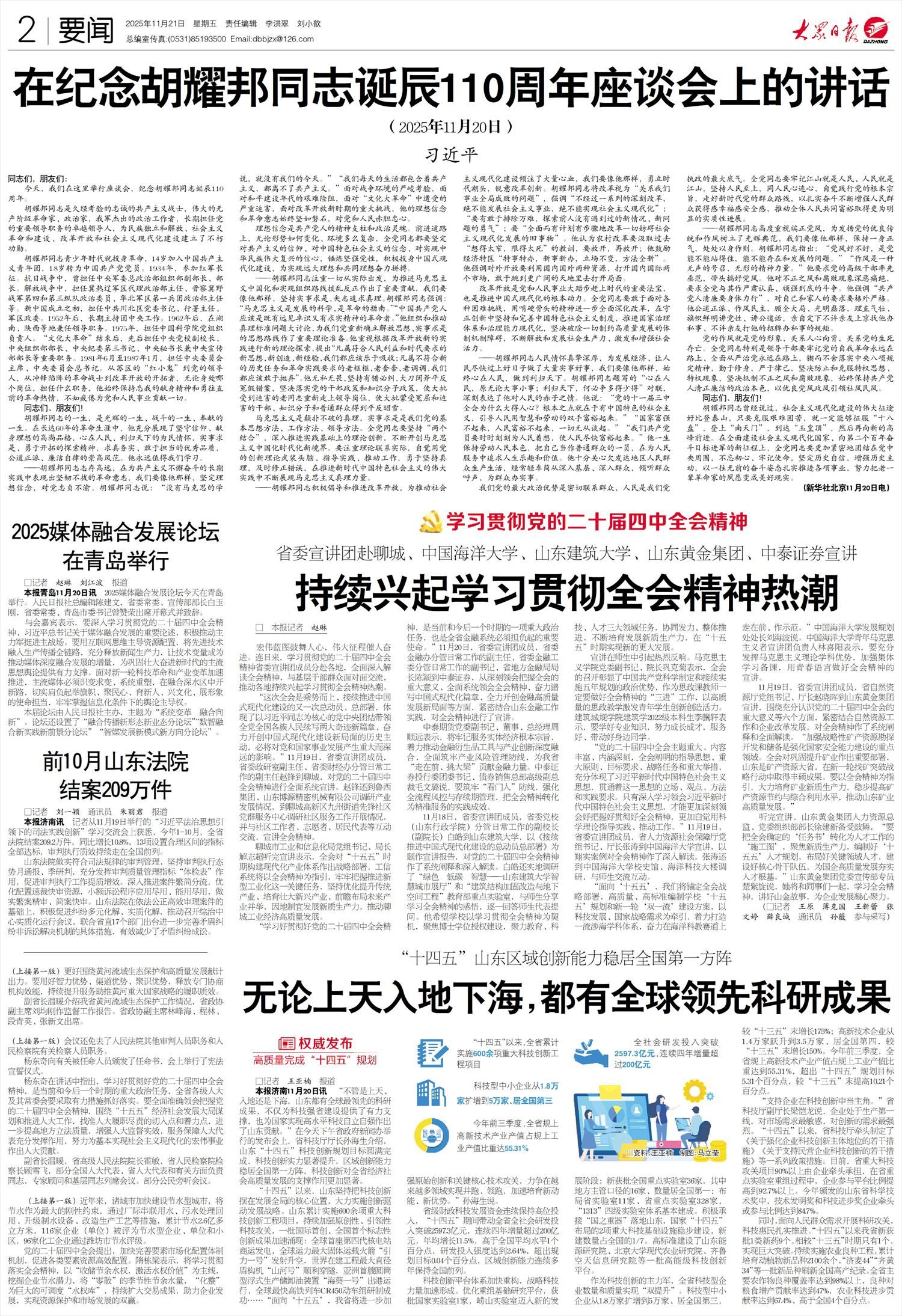 “这次全会是乘势而上、接续推进中国式现代化建设的又一次总动员、总部署,体现了以习近平同志为核心的党中央团结带领全党全国各族人民续写两大奇迹新篇章、奋力开创中国式现代化建设新局面的历史主动,必将对党和国家事业发展产生重大而深远的影响。”11月19日,省委宣讲团成员,省委政研室副主任、省委财经办分管日常工作的副主任赵锋到聊城,对党的二十届四中全会精神进行全面系统宣讲。赵锋还到鲁西集团、山东博源精密机械有限公司调研产业发展情况,到聊城高新区九州街道先锋社区党群服务中心调研社区服务工作开展情况,并与社区工作者、志愿者、居民代表等互动交流,宣讲全会精神。