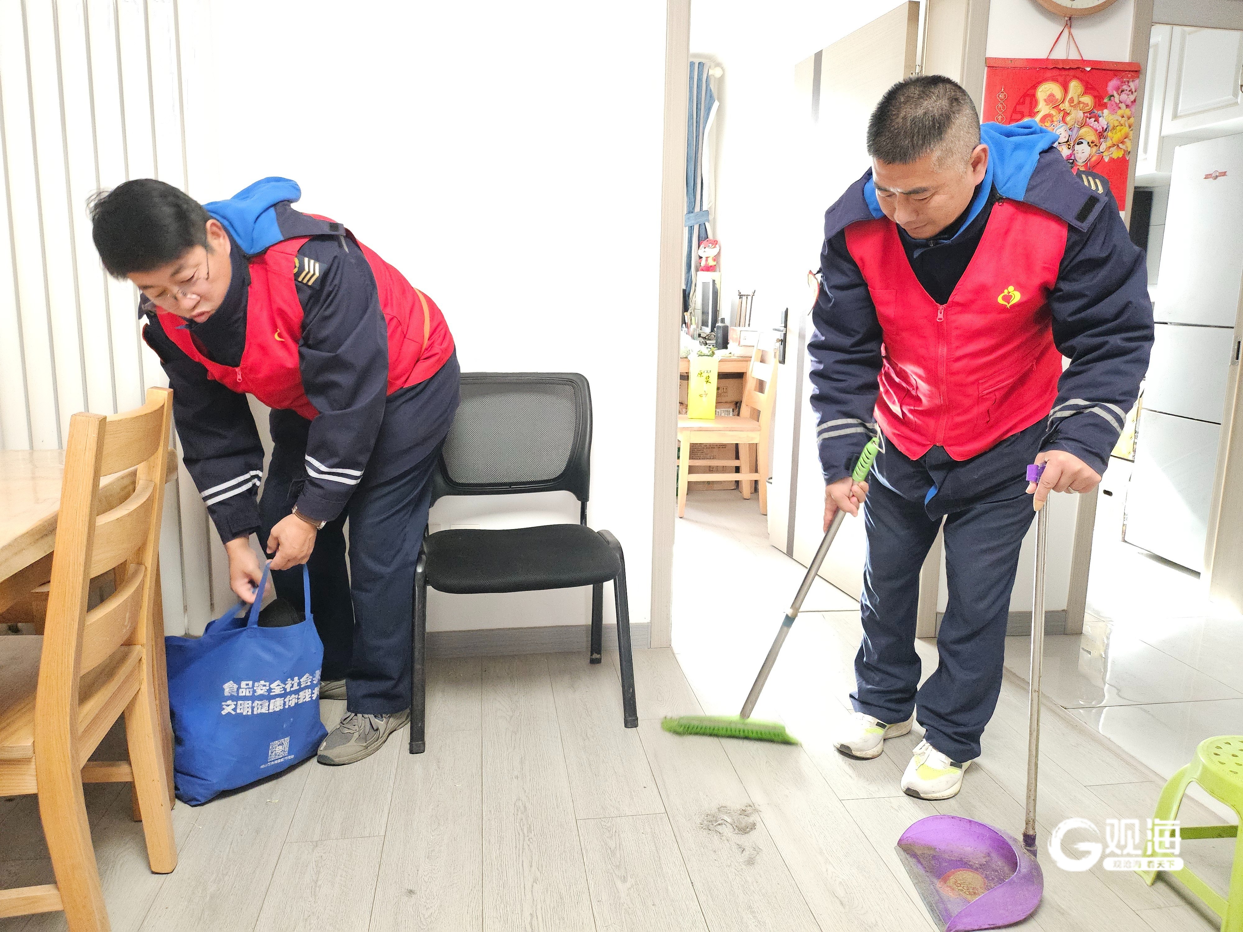 接着,大家看望92岁高龄的空巢老人王淑兰阿姨,为老人打扫房间、铺好被褥,贴心叮嘱老人注意保暖。
