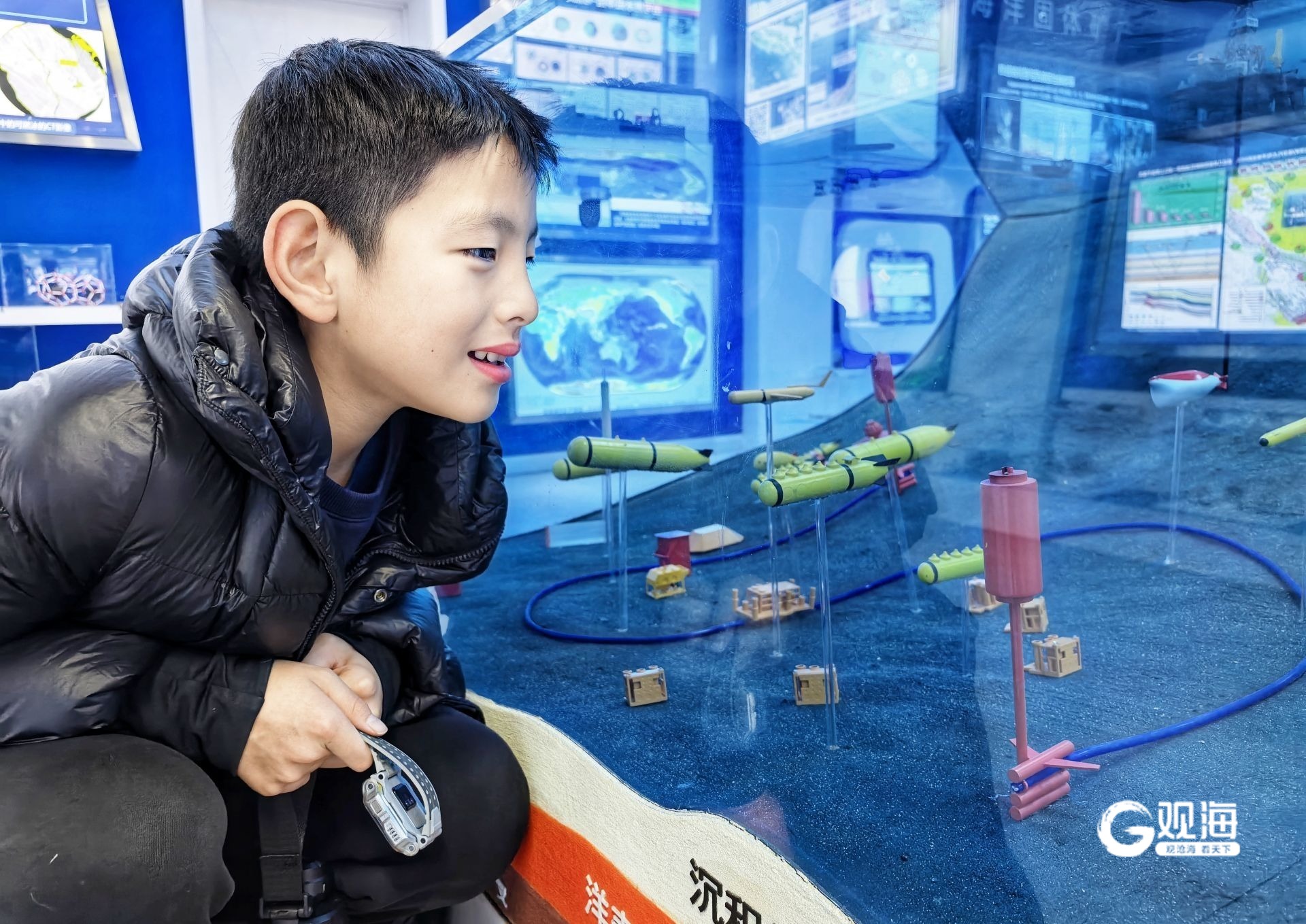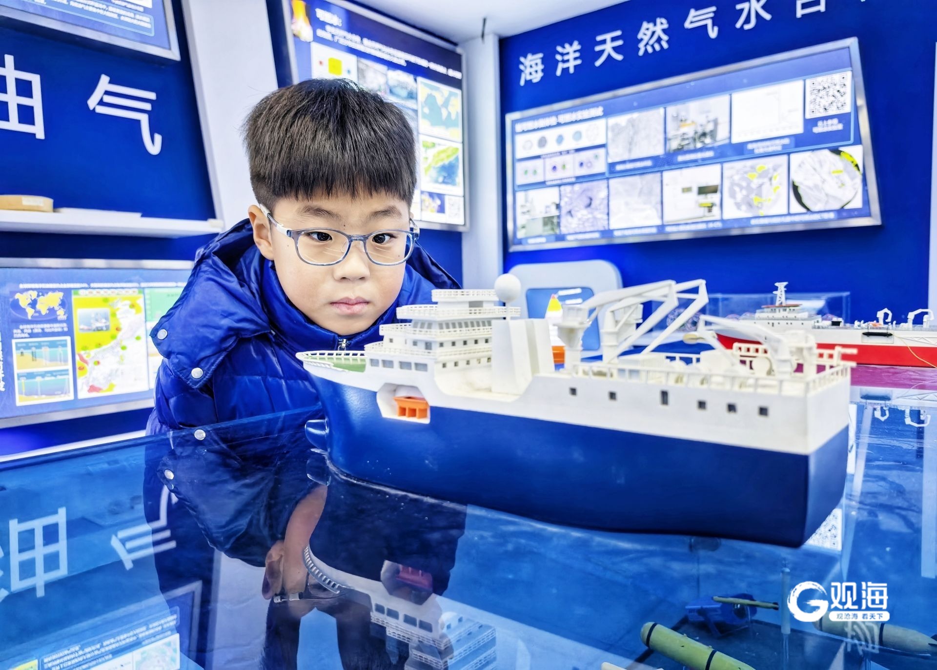 在“认识地球厅”,同学们了解了138亿年前的宇宙大爆炸、地球诞生、火山喷发、板块漂移,配合讲解员的生动解说,直观感受遥远的地质历史;在“海洋地质厅”,天然气水合物(可燃冰)引发了同学们的强烈好奇,当得知1立方米可燃冰可释放160立方米天然气,足够一户家庭使用3个月时,现场响起阵阵赞叹。