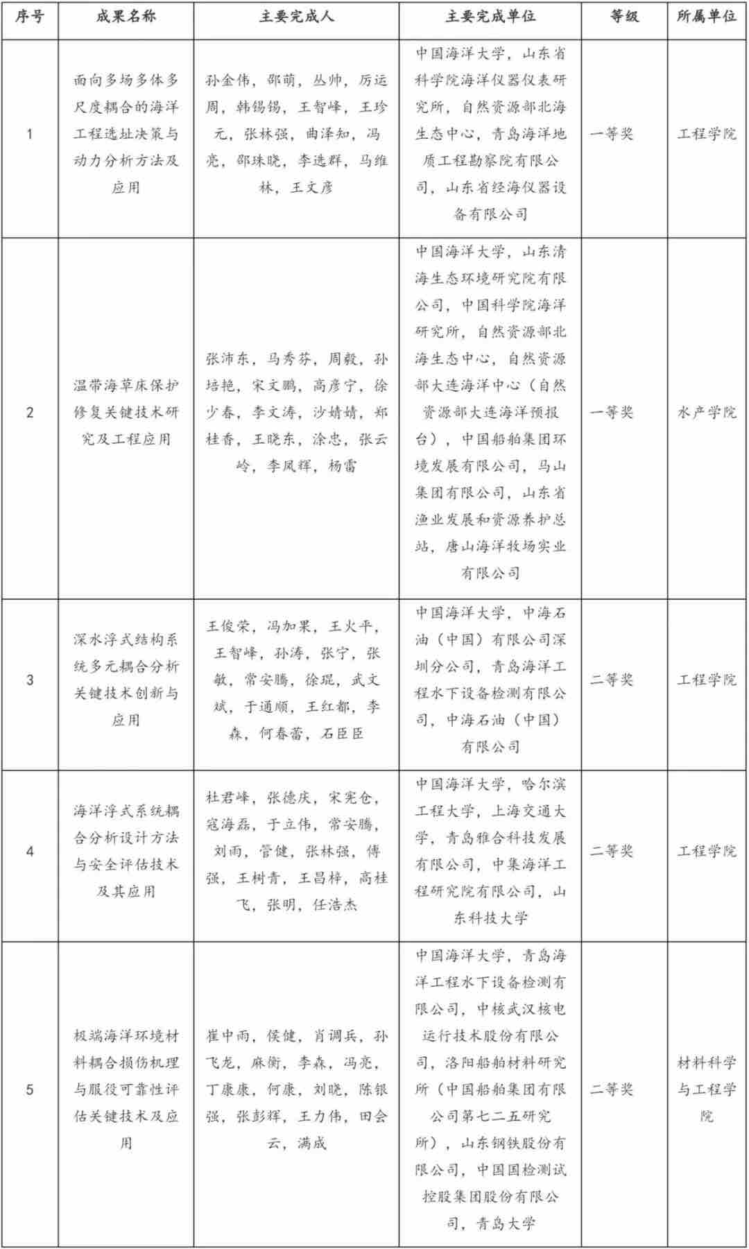 中国海洋大学主持获得2025年度海洋工程科学技术奖项目名单