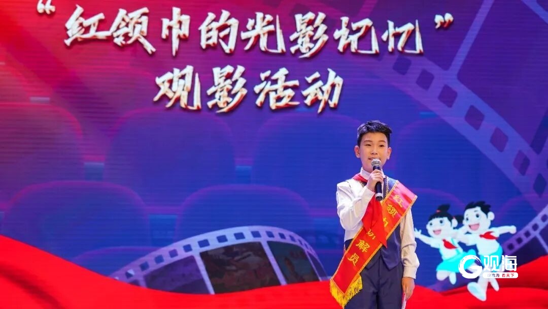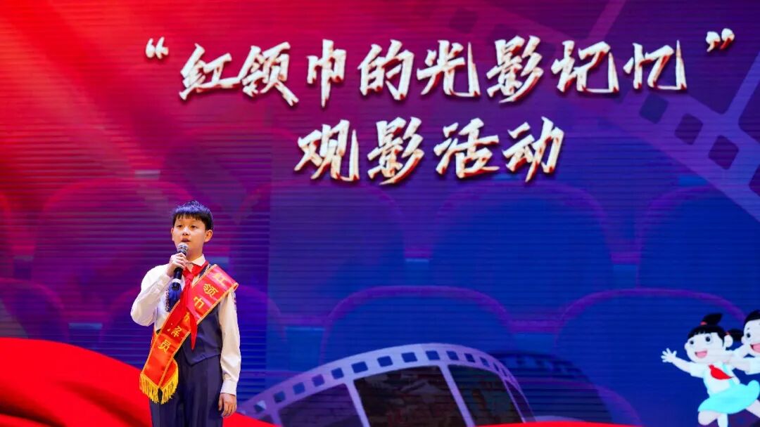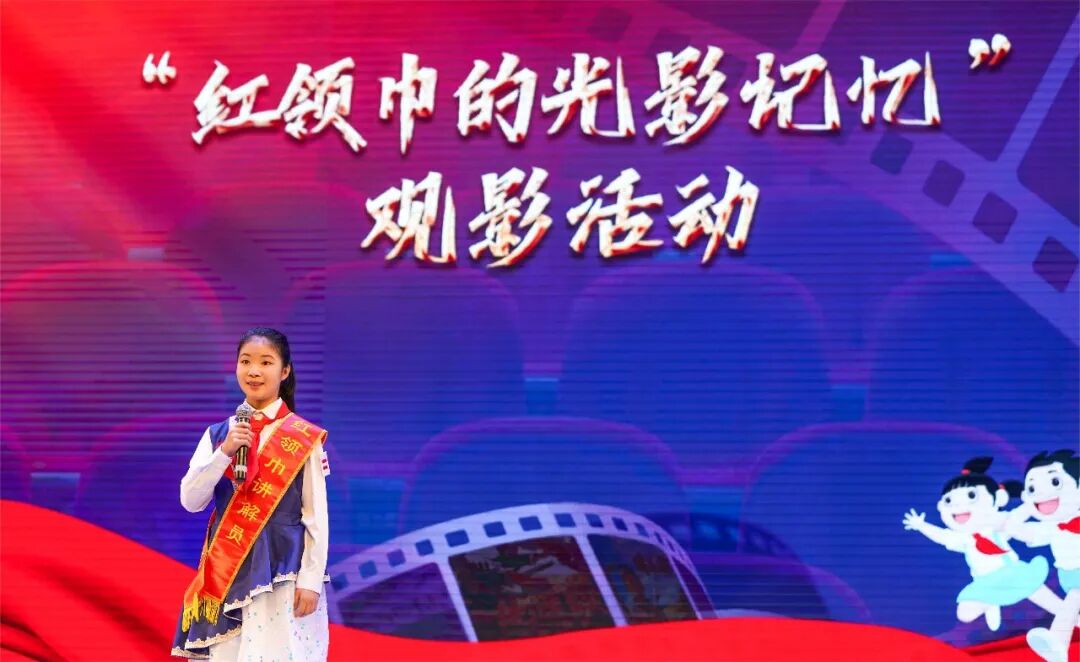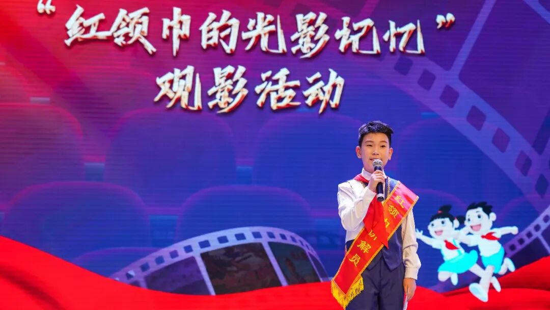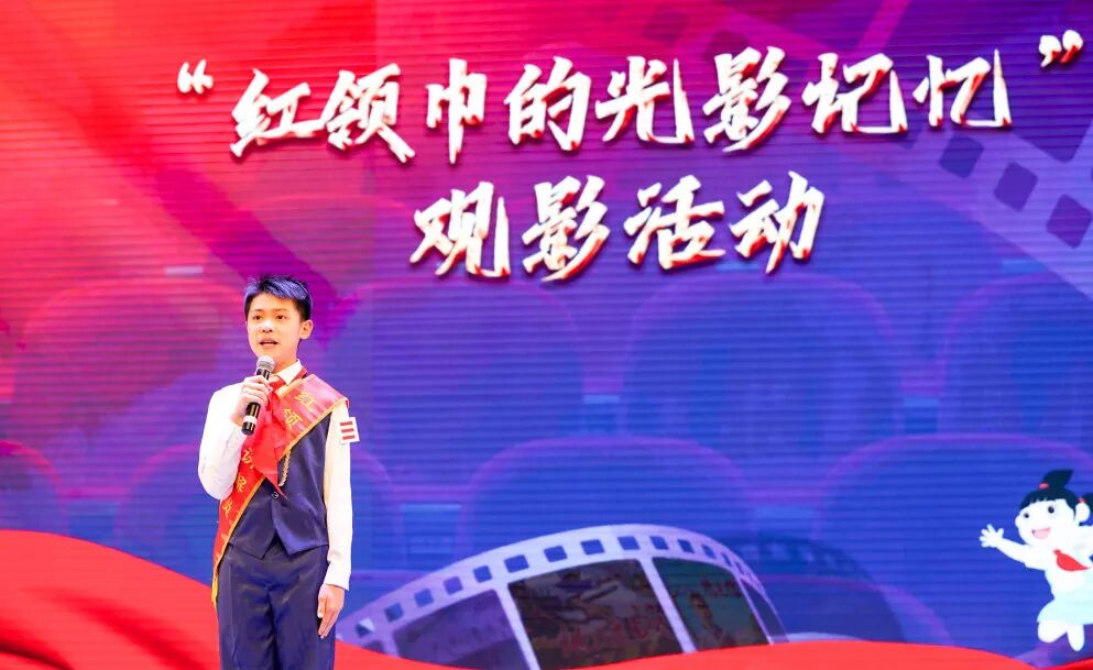 影片落幕,4名红领巾讲解员梁启岳、倪奕航、庞子欣、高晟涵依次登台分享感悟,结合影片内容畅谈对英雄精神的理解、对“责任”与“爱国”的思考,用真挚有力的语言传递新时代青少年的责任与担当,赢得现场阵阵掌声。