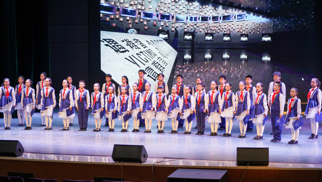 活动现场,少先队员胸前飘扬的红领巾与浓厚的爱国氛围交相辉映。在主持人张宸睿、张恩硕、王珝、王鸿轩的语言引领下,共同回望民族伤痛,感知红领巾肩负的传承使命。