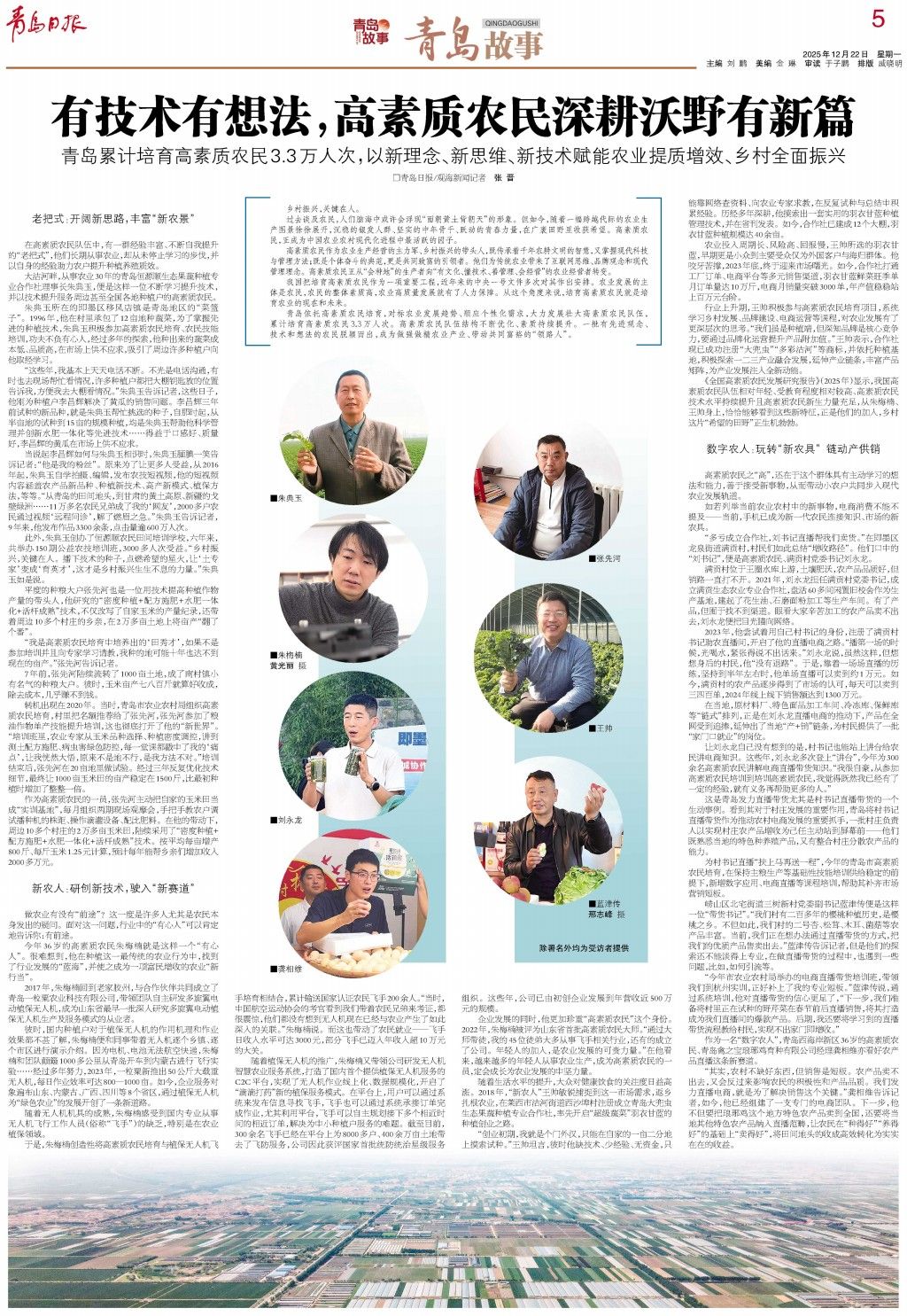青岛累计培育高素质农民3.3万人次,以新理念、新思维、新技术赋能农业提质增效、乡村全面振兴