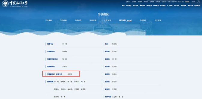 近日,中国海洋大学官网“现任领导”栏目更新显示,俞黎阳已任中国海洋大学党委副书记、纪委书记。