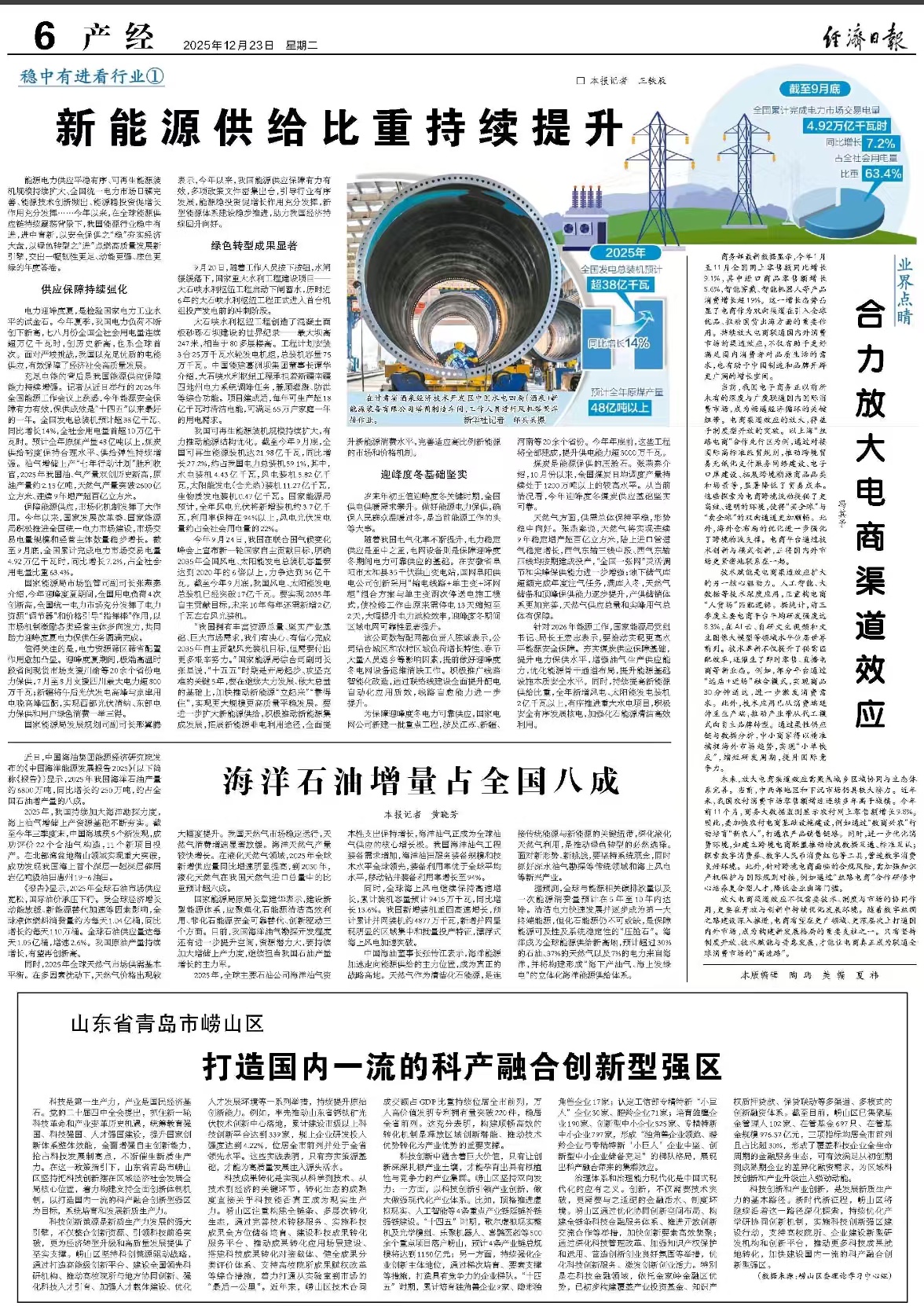 青岛日报社/观海新闻12月23日讯 12月23日,《经济日报》6版关注崂山区打造国内一流的科产融合创新型强区,刊发相关报道,全文如下: