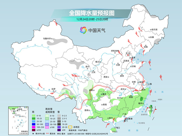 这次冷空气也将给华南带来降温,25日将是降温的主要时段,广西东部、广东、福建一带将出现4~10℃降温。