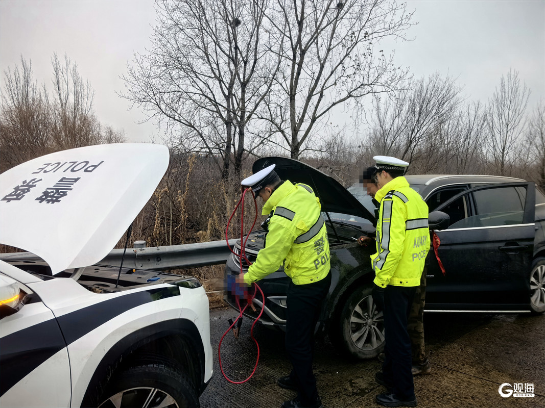 12月23日14时许,青岛市公安局交通管理支队董胶高速公路大队四中队民辅警在沈海高速胶州收费站执勤过程中,一驾驶员上前求助,称车辆熄火后无法启动。