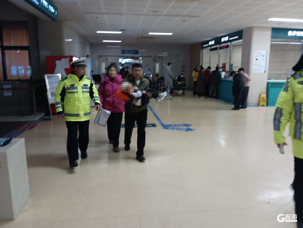 执勤民辅警了解情况后,立即向大队指挥室汇报后,随即驾驶警车在前方开道。一路上,民警开启警灯拉响警笛,利用喊话器提醒沿途车辆注意避让,仅用时15分钟便顺利引导车辆到达医院。此时,王某和妻子已经急得手足无措,民辅警见状上前帮忙挂号和引导就诊,直到男孩接受救治才离开。