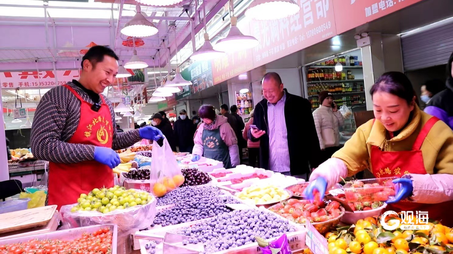 在“佳侬果品”摊前,做了十多年水果生意的王运海正热情招呼客人。他从酒店管理转行卖水果,一干就是十多年。面对更宽敞、明亮的摊位,他也有了新计划:“环境好了,我们水果品质也一直往上走,接下来想把线上社群做起来,让老顾客买起来更方便。”