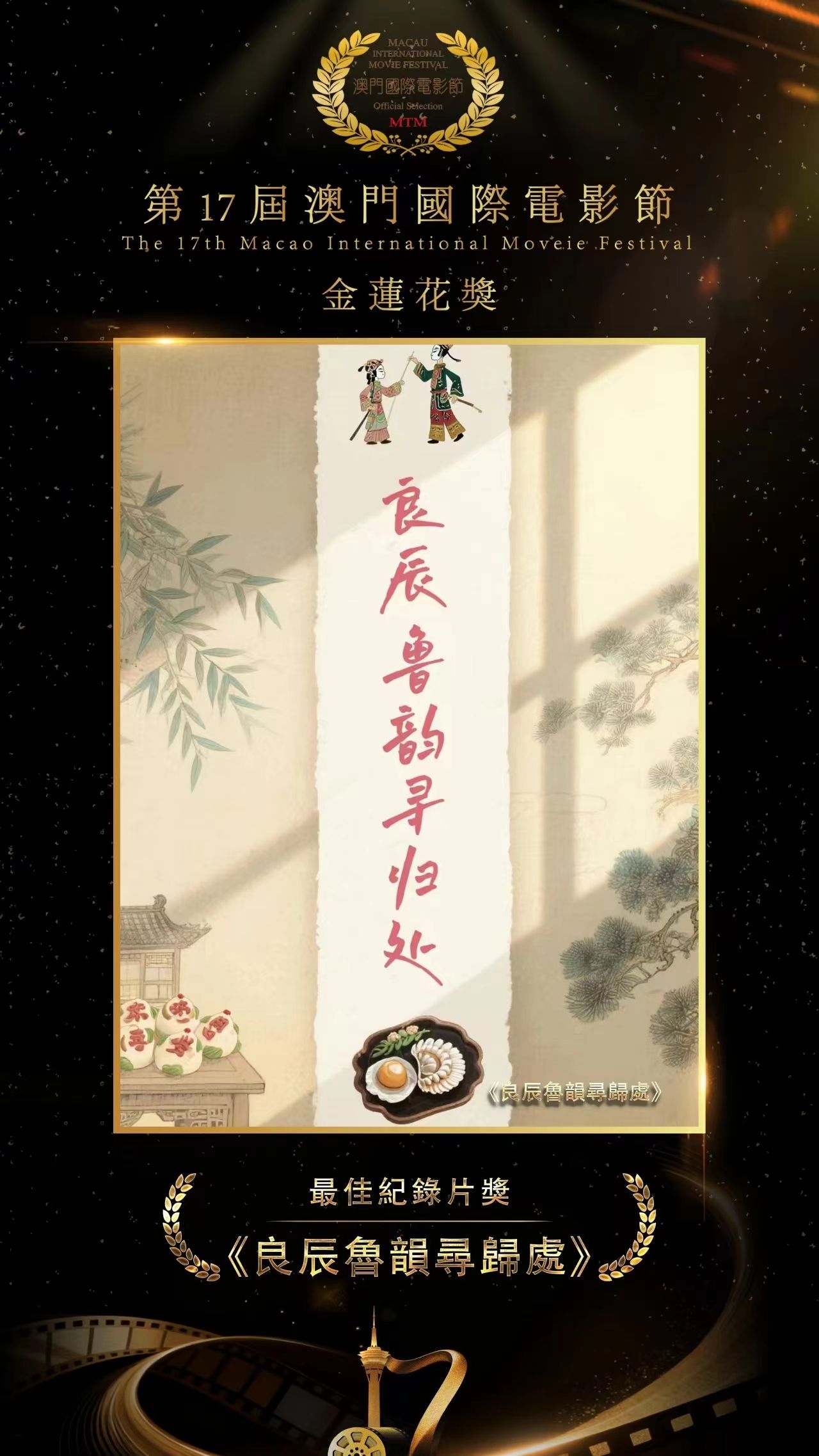 青岛日报社/观海新闻12月27日讯 第17届澳门国际电影节颁奖礼12月23日晚间举行;由青岛伴我同行影视文化有限公司出品的《良辰鲁韵寻归处》荣获最佳纪录片奖“金莲花奖”,为“青岛出品”纪录片揽获了重要奖项。