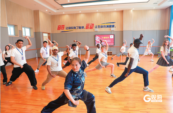 “上合青年邂逅青岛”活动期间,国外高校学生在青岛幼儿师范高等专科学校体验中国传统文化。