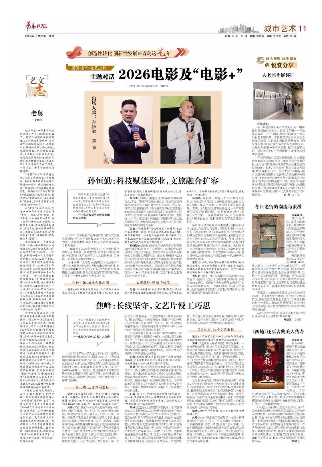 焦峰:2025年我们做了两部片子,一部《一帆风顺》还在拍摄当中,讲述一个母亲如何独自撑起一个家庭的故事;还有一部《风起夏日长》,讲述小女孩在假期独自上路回老家探望外婆的故事,可以想象成《菊次郎的夏天》的儿童版,一路上都是两个小朋友,没有成人。预计2026年作品会完成剪辑、参加电影节展,顺利的话2027年跟大家见面,期待文艺片市场持续回温。(青岛日报/观海新闻记者 米荆玉)
