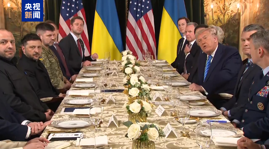 当地时间28日,美国总统特朗普与乌克兰总统泽连斯基在美国佛罗里达州会面。随后,双方进入海湖庄园宴会厅进行会谈,美乌代表团成员参加,媒体记者被请离现场。
