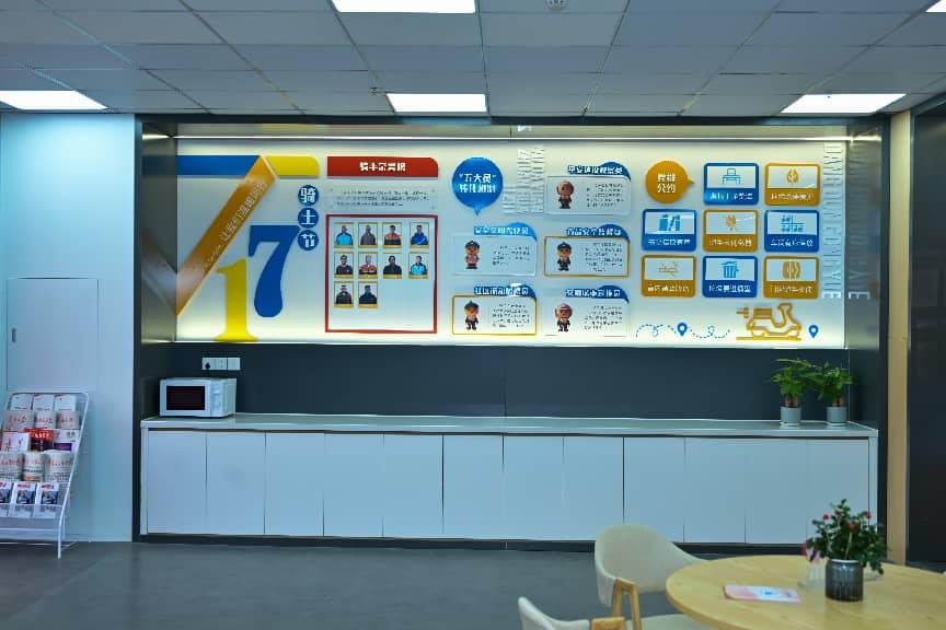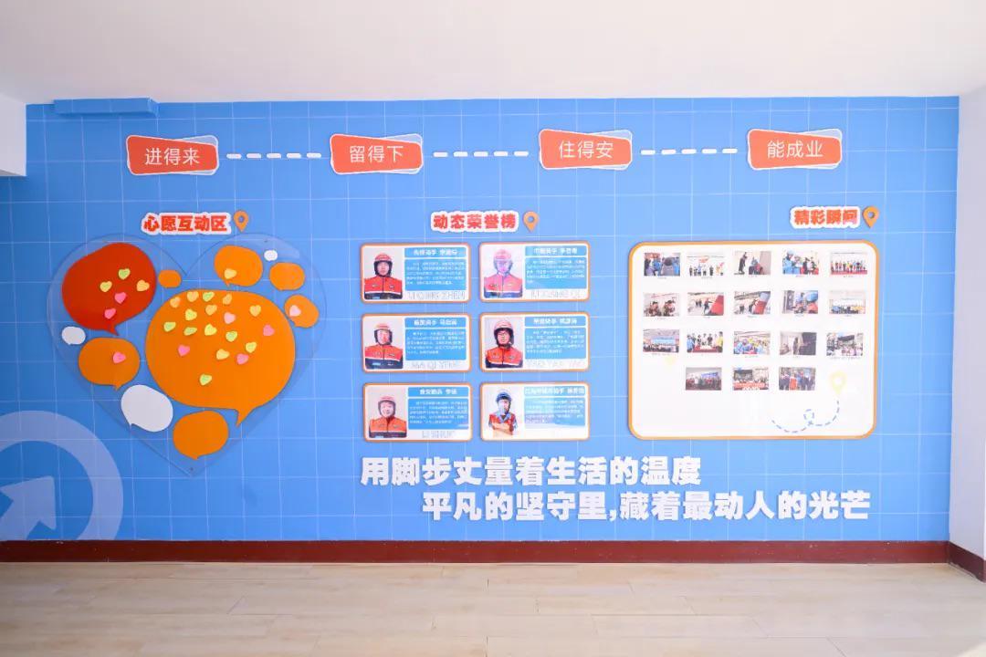 “此心安处是吾乡”的主题墙、“幸福都是奋斗出来的”景观小品,以及动态荣誉榜展示优秀骑手事迹,点点滴滴都会让骑手们感受到尊重与认同。荣誉榜中,既有青岛本地成长起来的优秀骑手,也有淘宝闪购平台推荐的“社区侠”标兵,他们的事迹共同构成了新就业群体的精神标杆。