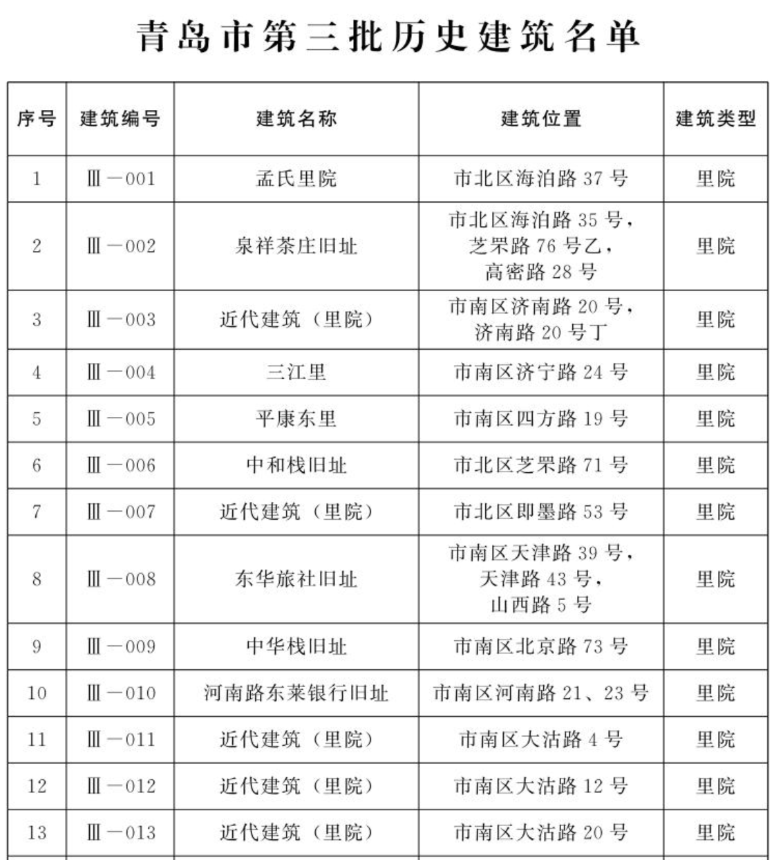 青岛日报社/观海新闻12月29日讯 历史建筑是承载城市历史文化的重要部分。日前,青岛市人民政府公布青岛市第三批历史建筑名单,将孟氏里院(市北区海泊路37号)、河南路东莱银行旧址(市南区河南路21、23号)等16处建筑列为青岛市第三批历史建筑进行保护。截至目前,全市累计公布历史建筑353处。