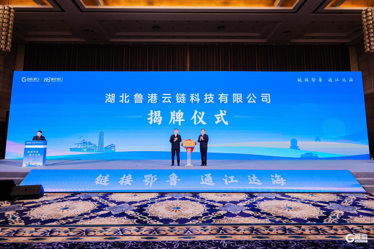 现场,为推动供应链从“硬件联通”向“智慧赋能”迭代升级,由山东港口科技集团与湖北港口旗下湖北供应链物流公共信息服务股份有限公司共同设立的合资公司——湖北鲁港云链科技有限公司正式揭牌成立,成为两港数智化协同发展的又一里程碑。该合资公司以构建“铁水公空仓”五网融合的省级物流公共信息平台为核心,将依托湖北港口丰富的内河港口、航道、船闸等实体场景资源,融合科技集团在智慧港口领域的技术积淀与实践经验,强强联合,全力打造内河智慧港口与智慧航道的标杆示范项目,研发系列可复制、可推广的解决方案与产品,为供应链资源集聚与产业协同发展提供坚实的科技支撑。