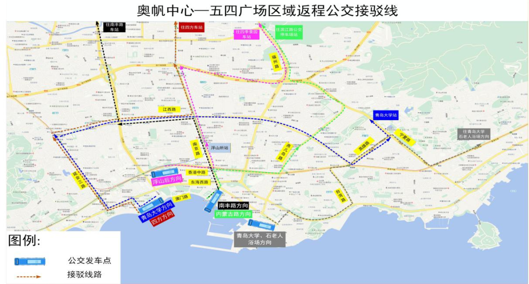 活动结束后,为解决部分市民游客乘坐公交车离场的需求,青岛城运控股集团将在“奥帆中心—五四广场”周边区域和崂山区石老人海水浴场区域设置公交车发车点,以上各发车点的公交车运营执行公交票价。青岛地铁集团将对相关线路的末车时间进行延时,市民游客可通过青岛地铁APP、青岛地铁官方微博、微信等途径了解延时服务信息。