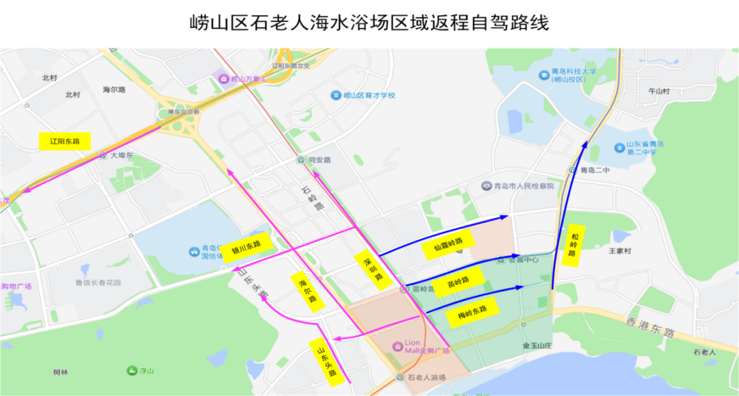 (2)深圳路以西区域驶离的车辆,请沿梅岭东路、银川东路、辽阳东路向西绕行;或沿山东头路、海尔路、深圳路向北绕行。