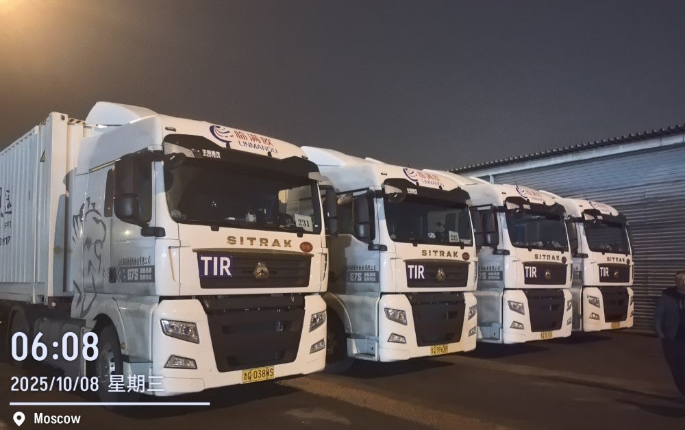这是临满欧国际物流有限公司抵达莫斯科的TIR货车。(受访者供图)