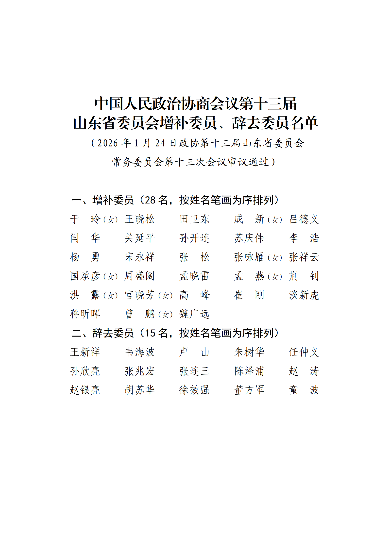 中国人民政治协商会议第十三届山东省委员会增补委员、辞去委员名单 2026-01-25 01:51 山东政协 我要评论0 字号: 责任编辑:孙源熙 微笑 流汗 难过 羡慕 愤怒 流泪 复制网址 打印 收藏 分享到: 0