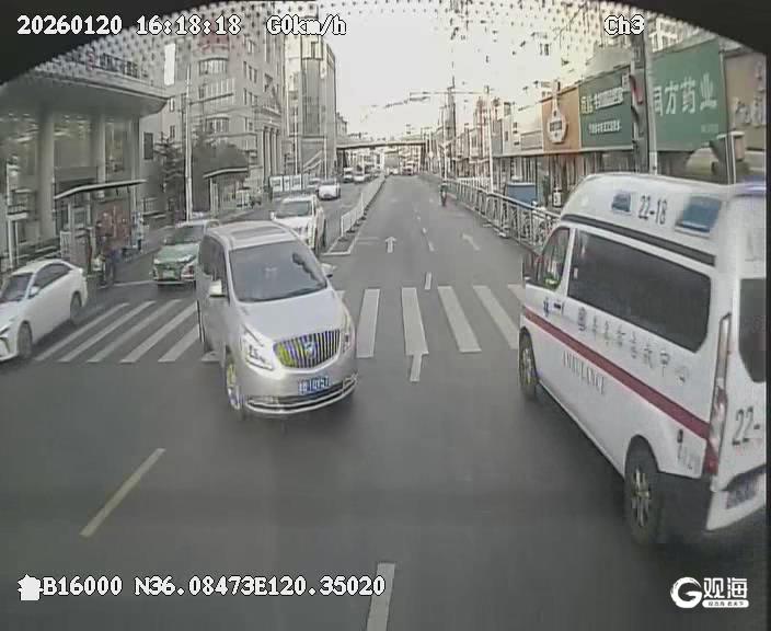就在这时,一阵紧急的救护车警笛声从后方车道传来。梁鹏迅速判断情况,发现一辆救护车被车流阻挡在后方,难以快速通过路口。时间紧迫,他果断采取行动:在确认右侧车道安全的前提下,迅速从最右侧车道驶至路口,并将车辆向路口左前方呈45度方向适度转向,为后方救护车腾挪出足够的通行空间。