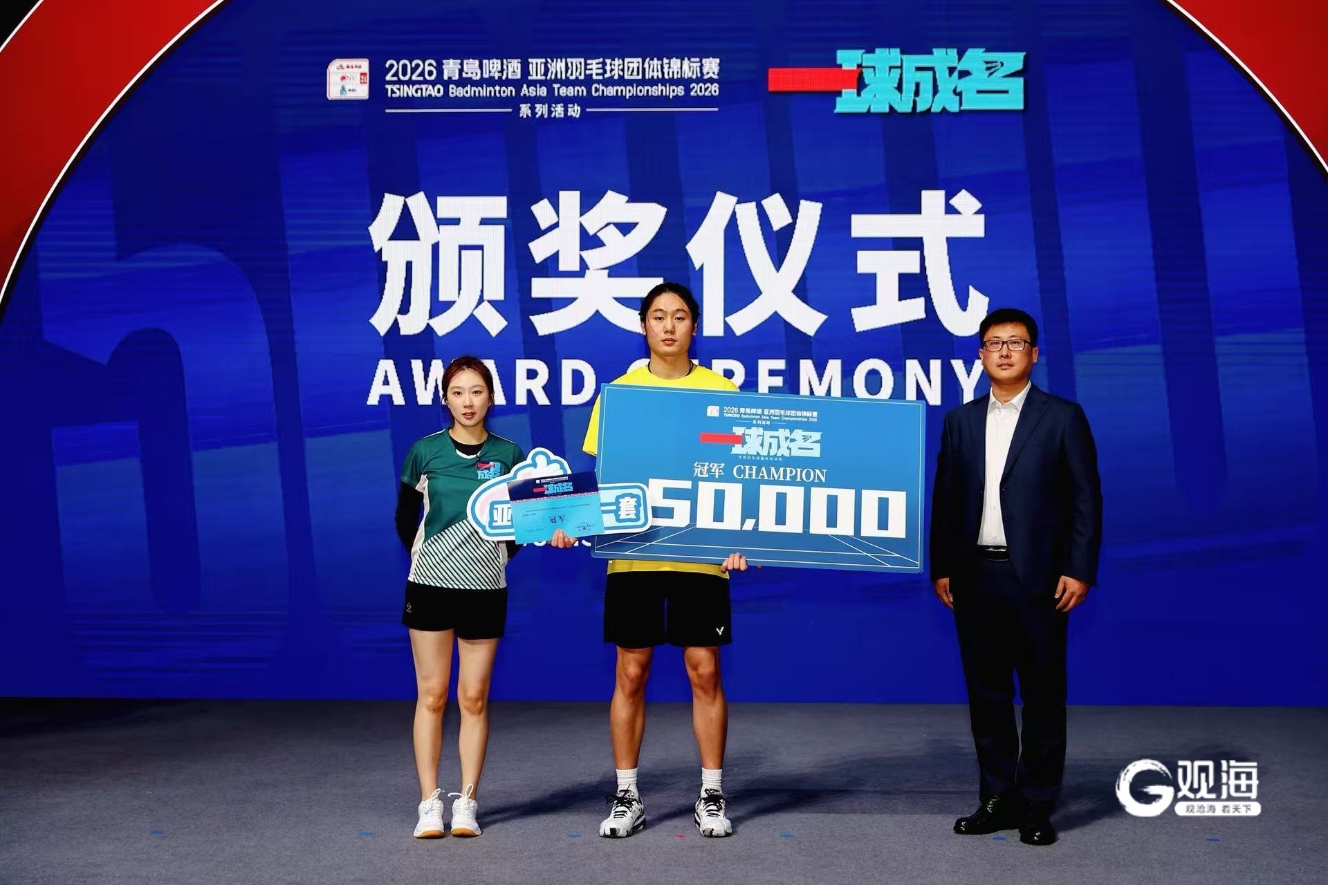 让我们再次恭喜娄书闻摘得“一球成名”总冠军头衔!本次2026青岛啤酒亚洲羽毛球团体锦标赛·“一球成名”全民羽毛球趣味挑战赛的成功举办,不仅为羽毛球爱好者提供了一个展示自我、圆梦职业赛场的舞台,更通过亚团赛这一国际化平台,进一步激发了青岛乃至全国的羽毛球运动热情,实现了顶级赛事与全民健身的深度融合。