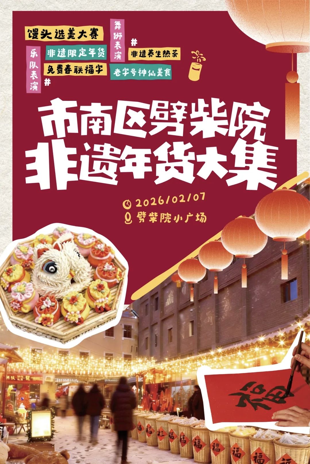 青岛日报社/观海新闻2月4日讯 近日,记者从市南区文化馆获悉,“非遗贺新春·寻味中国年”劈柴院年货大集暨2026年市南区“非物质文化遗产月”启动仪式,将于2月7日(周六)上午10时在市南区劈柴院小广场(北京路16号)热闹启幕。届时,将为市民游客带来一场集民俗体验、年货采购、文艺展演于一体的新春文化盛宴。