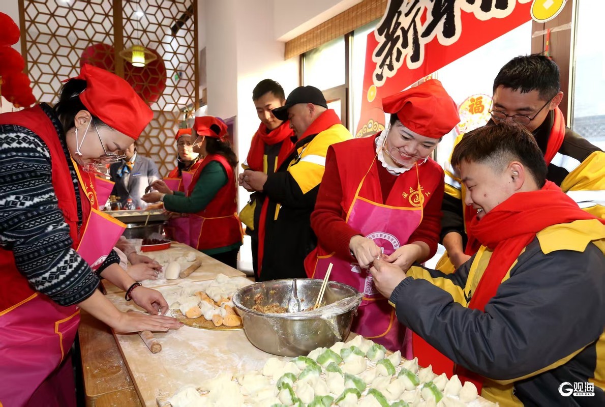 青岛日报社/观海新闻2月14日讯 春节来临之际,青岛市即墨区举办了“我在即墨过大年”新就业群体人员关爱活动,外卖小哥、快递小哥、网约车司机等新就业群体代表与社区工作人员、爱心志愿者们在暖“新”驿站欢聚一堂,共同写福字、包饺子、赏花灯,喜迎新春佳节的到来。(青岛日报/观海新闻记者 王涛 通讯员 梁孝鹏 文/图)